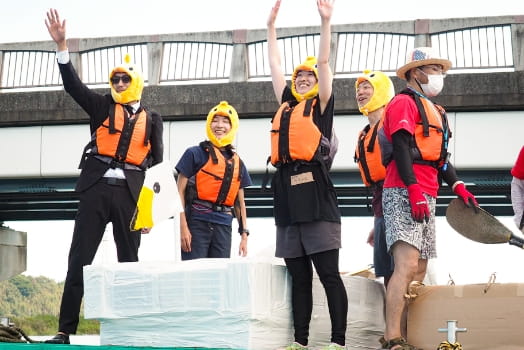 3年目は、一寸法師クラスのイカダを「当日レース前の1時間で制作」という形に変更。同じ条件にも関わらず形も性能も違うイカダがたくさん登場したのはお見事でした。