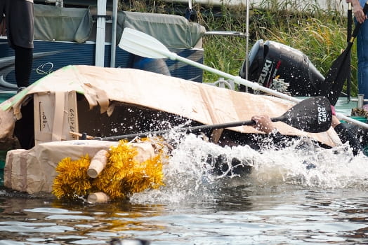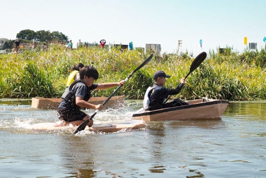 印旛沼ダンボールイカダCUP ~お前が沈んで喜ぶ者に、お前のパドルを任せるな~(広報さくら)